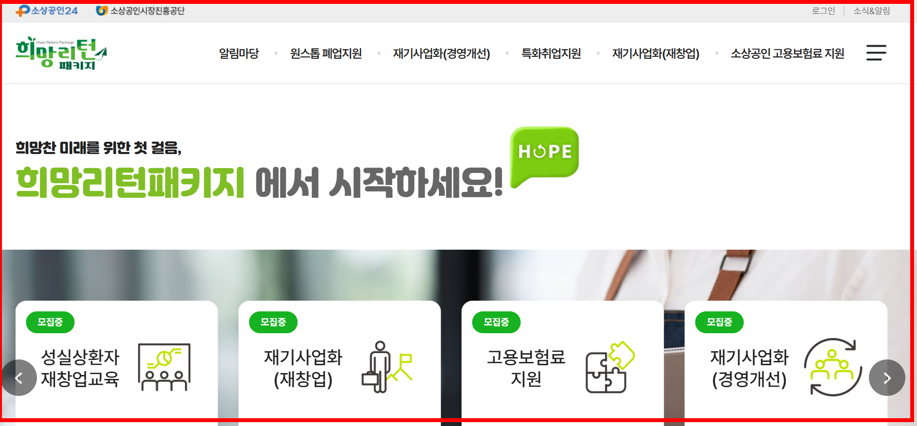 지금 이 순간이 바로 여러분의 재기의 시작입니다. 아래 버튼을 눌러 희망리턴패키지를 신청하고, 정부 지원을 적극 활용해 보세요.